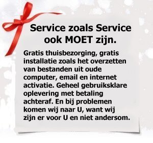 Bij ons betaald u nooit vooruit. U betaald pas als u tevreden bent over onze service- , reparatie- , dienstverleningen of gebruiksklare oplevering van uw bestelde producten. Dus ook als u een nieuwe computer en/of randapparatuur bij ons koopt kunt u via deze webshop bestellen zonder vooruitbetaling en komen wij gratis bij u thuis gebruiksklaar opleveren.